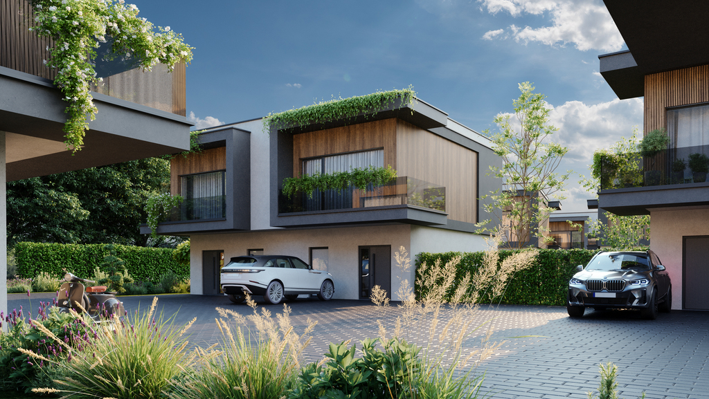 Prywatne ogrody od 80 do 150 m² są naturalnym przedłużeniem salonu – miejscem porannej kawy, letnich spotkań z bliskimi i odpoczynku po intensywnym dniu. Do dyspozycji mieszkańców przewidziano również dwa indywidualne miejsca postojowe przy każdym domu, zapewniające wygodę i swobodę użytkowania na co dzień.