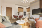 Układ mieszkania: przedpokój, łazienka, pokój, salon z aneksem kuchennym.