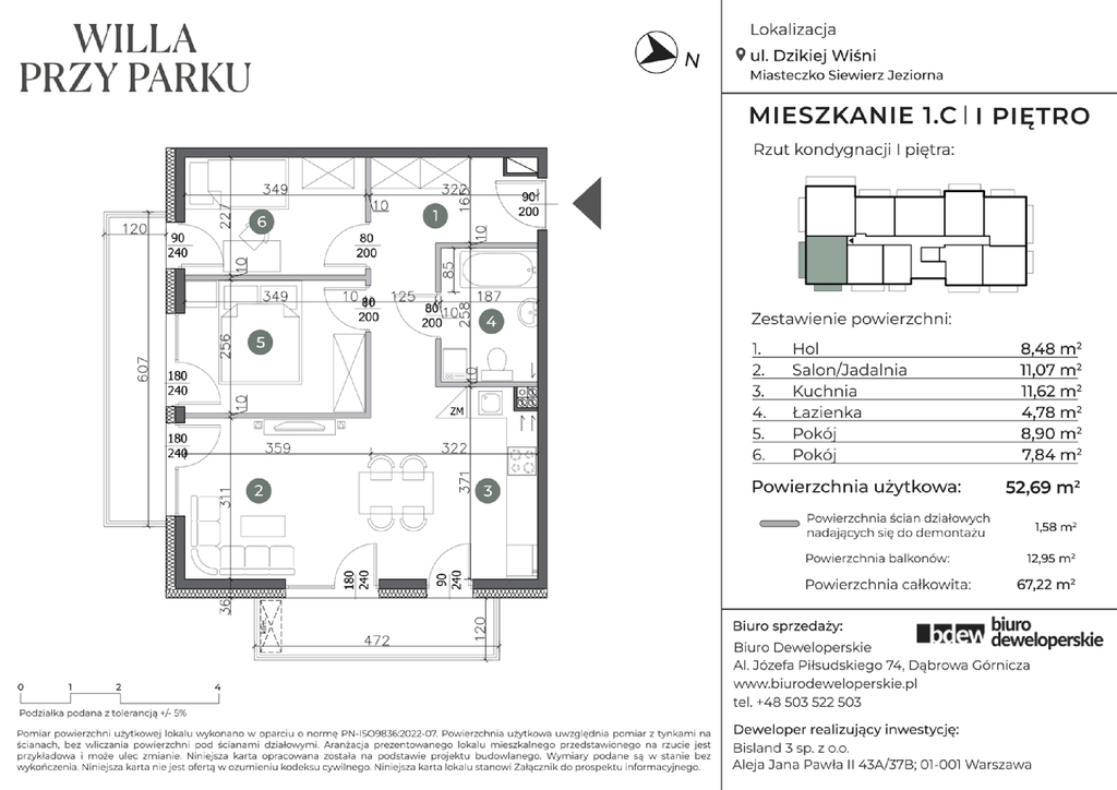 • 3-pokojowe mieszkanie numer 1.C położone na I piętrze w inwestycji Willa Przy Parku