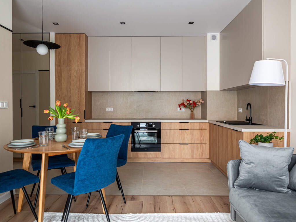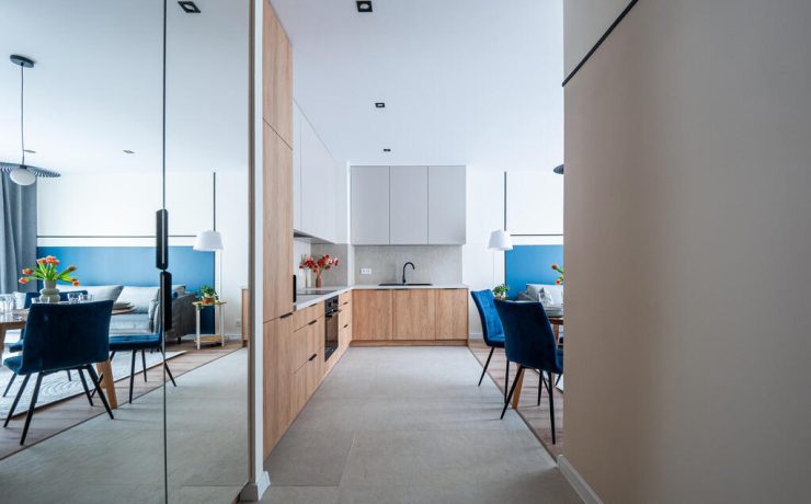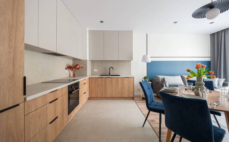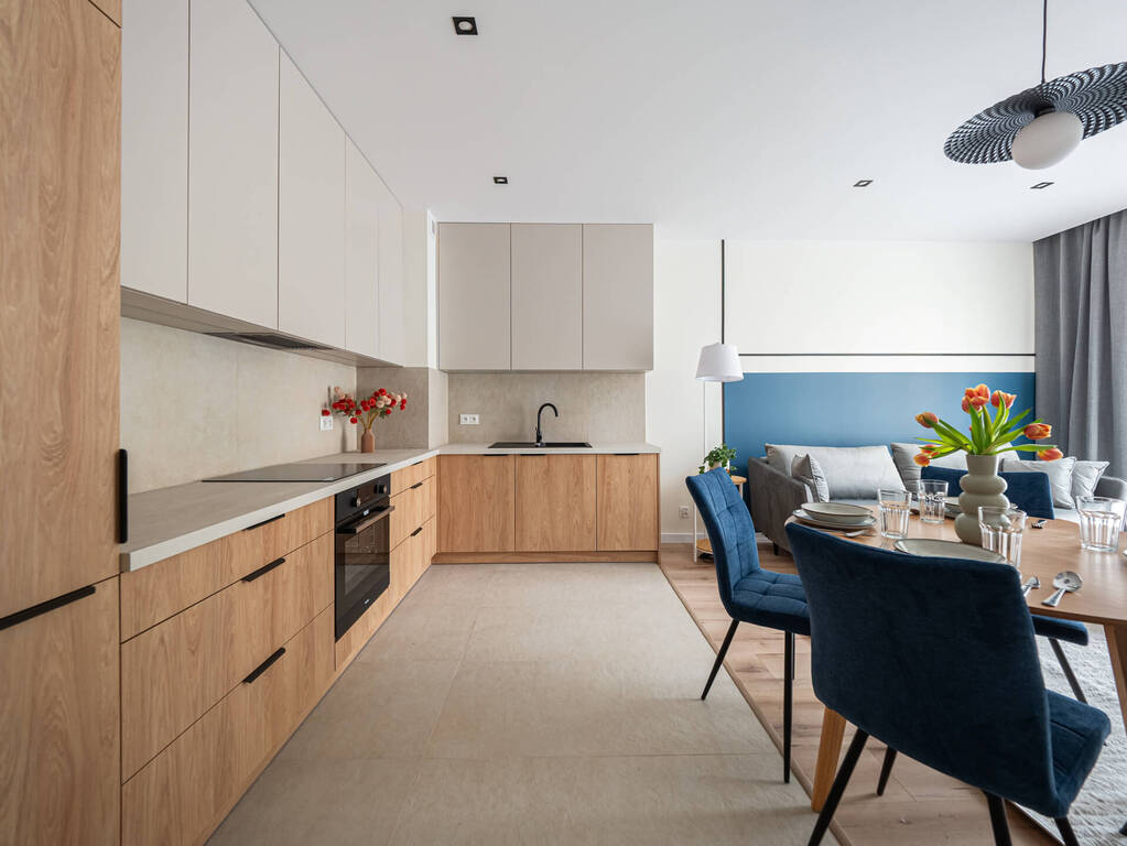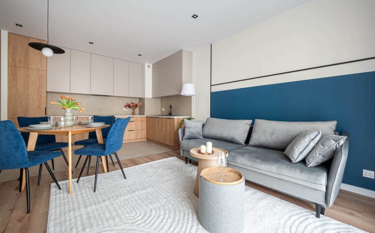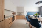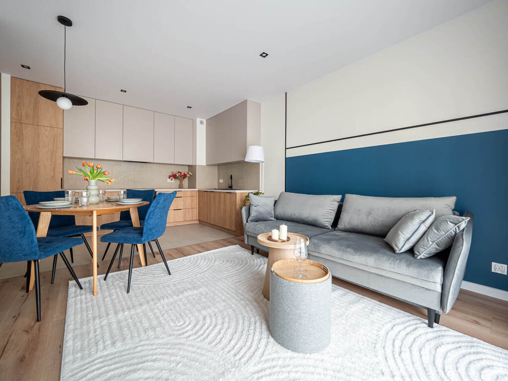 Mieszkanie o funkcjonalnym układzie na który składa się: przedpokój, przestronna część dzienna z otwartą kuchnią oraz wyjściem na balkon, łazienka, w pełni umeblowana sypialnia oraz jeden pokój do własnej aranżacji. Kuchnia w pełni wyposażona w zabudowy meblowe oraz sprzęty AGD. W łazience znajduje się pralka oraz zabudowa meblowa, która zapewnia miejsce do przechowywania. Na podłogach w pokojach znajdują się panele oraz płytki ceramiczne. W całym mieszkaniu zabudowy meblowe zostały wykonane na wymiar co zapewnia pełne wykorzystanie przestrzeni oraz dużą ilość miejsca do przechowywania. Mieszkanie wykończone z dbałością o detale.