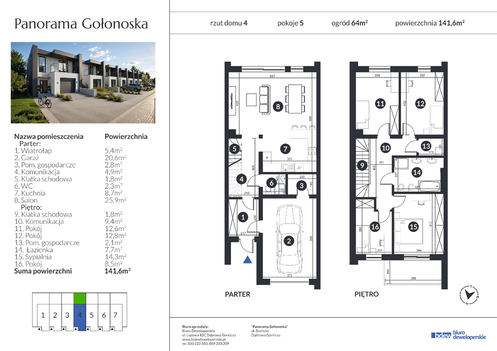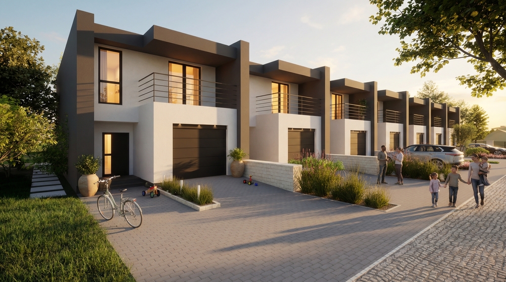 Panorama Gołonoska to kameralne osiedle domów w zabudowie szeregowej. Inwestycja powstanie w dwóch etapach – pierwszy 4 domy, które będą gotowe do obioru jeszcze w tym roku. Kolejny etap, w ramach którego powstaną 3 domy, ruszy niebawem i będzie gotowy pod koniec roku 2027. Zaprojektowane w przemyślany sposób wnętrze łączy funkcjonalność z wygodą użytkowania przyszłych właścicieli. o idealna propozycja dla rodzin, które chcą połączyć komfort domu z wygodą miasta.
